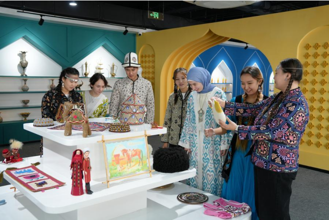 Граждане государств Центральной Азии представляют специфические товары из своих стран на Платформе сотрудничества для беспрепятственной торговли формата “Китай – Центральная Азия” в городе Нанкин (адм. центр пров. Цзянсу, Восточный Китай). Фото предоставлено холдинговой корпорацией Jiangsu SOHO Holdings Group Co., Ltd